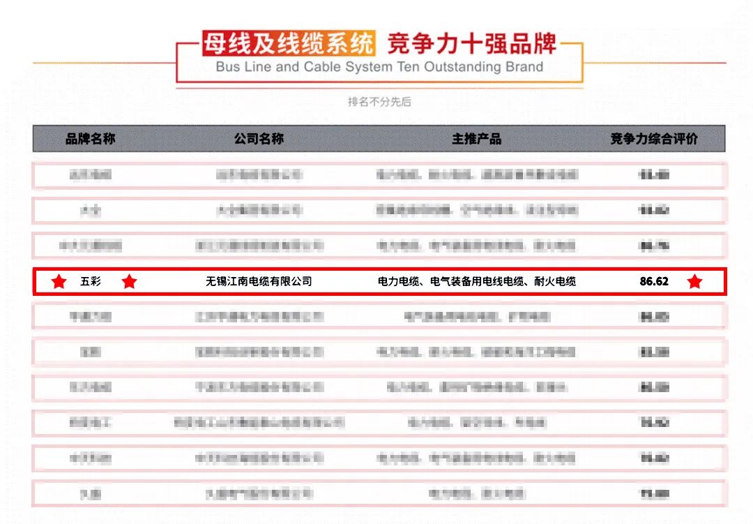 Jiangnan Cable won the Top 10 Building Electrical Brand Competitiveness in 2021!